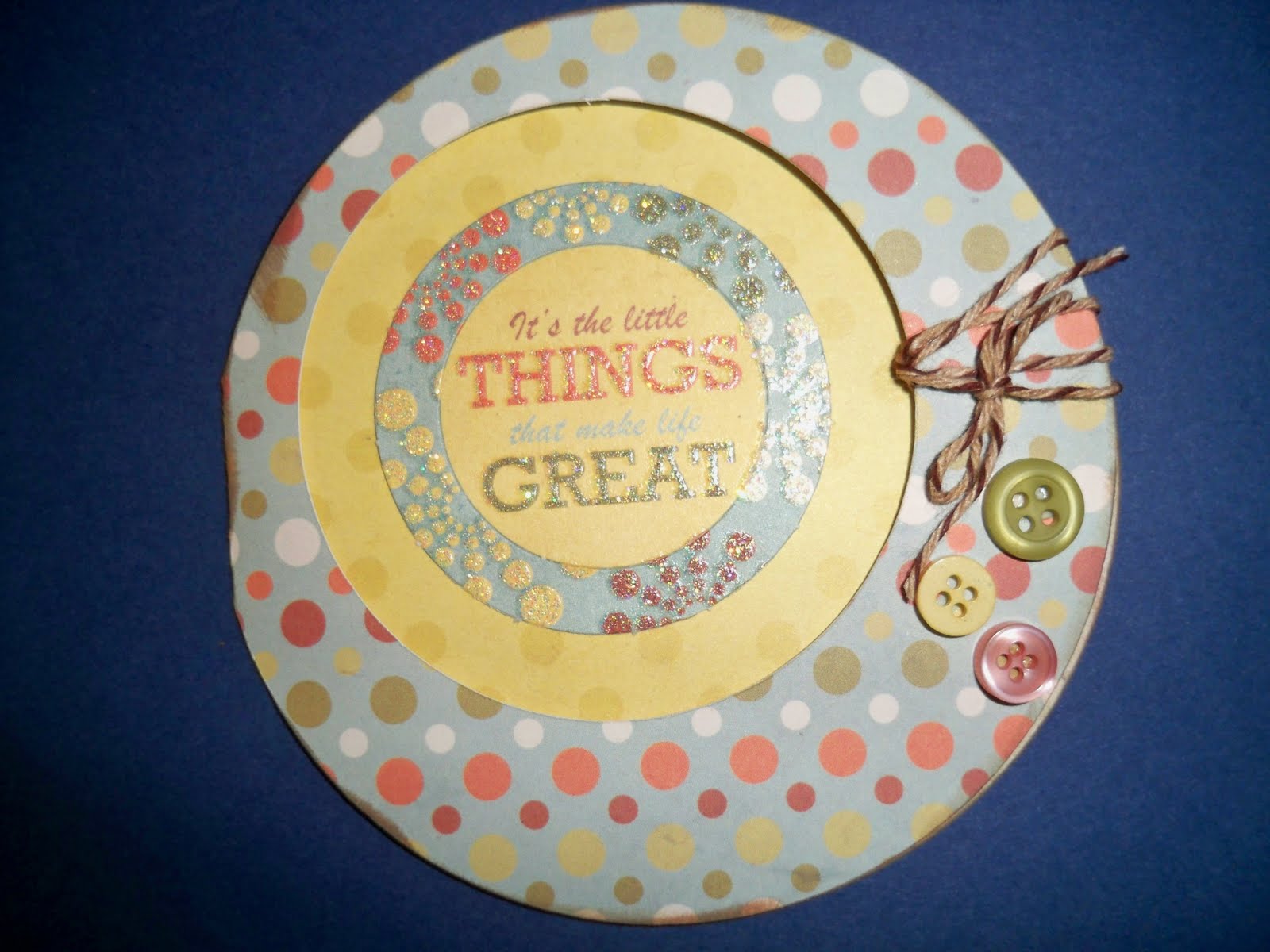 Great card Karen! I love the sentiment, cute buttons and twine. Great job my friend:)